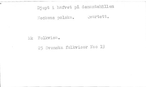 //// Djupt i hafvet på demantehällen //// "Teckens polska. 4vartett. //// Ik Folkvisa. //// 25 Svenska folkvisor N:o 19 ////
