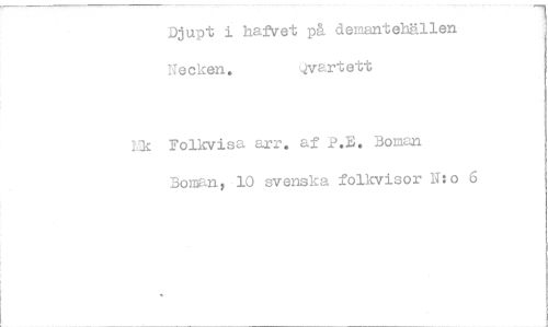 //// Djupt i hafvet pä demantehällen //// Necken. vartett //// Lk Folkvisa arr, af P.B. Boman Bomant,10 svenska folkvisor N:o 6 ////