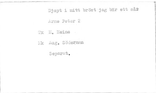 //// Djupt i mitt brast jag bär ett såt Arme Peter 2 //// 2x H. Heine //// I. Aug. Söderman //// S eparat. ////