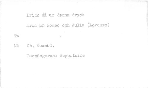 //// Drick då ur denna dryck //// ria ur Romeo och Julia (Lorenzo) //// hk Ch. Gounod. //// Bassångarens Aepertoire ////