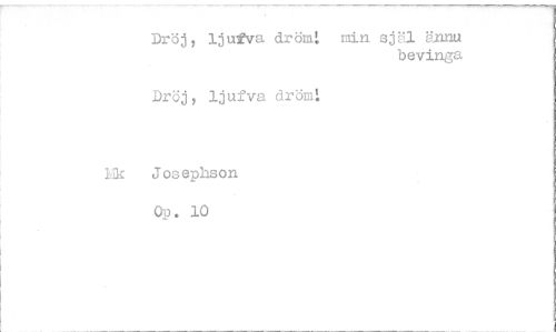 //// Dröj, ljufva drömt min sjU. ännu //// bevinga //// Dröj, ljufva dröm: //// rilr. Josephson //// op. 10 ////