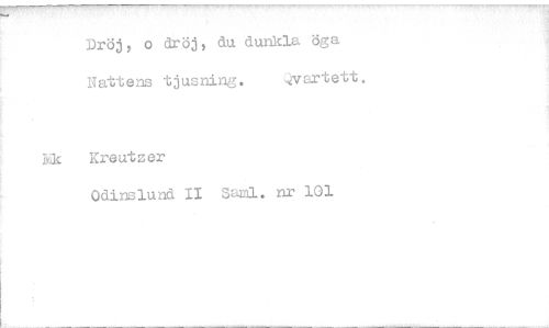 //// :Dröj, o dröj, du dunkla öga //// Nattens tjusning. vartett, //// rik Kreutzer //// Odinslund II 3anl. nr 101 ////