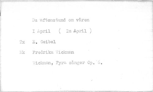 //// aftonstund om våren //// 1 April ( Im April ) //// Geibel //// Ht Fredrika Wickman //// Wickman, Fyra sånger Op. '6. ////