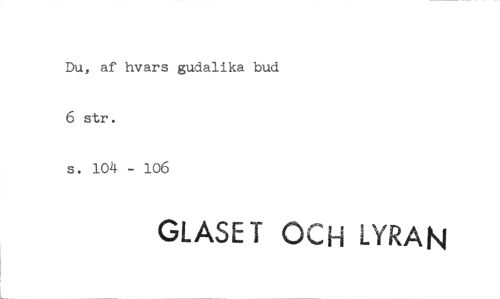 //// Du, af hvars gudalika bud 6 str. //// s. 104 - 106 //// GLASET OCH LYRAN ////