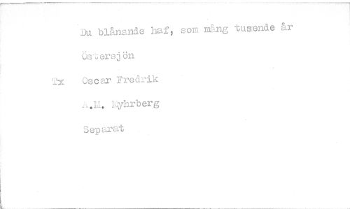 //// Du blånande hafs som mång tuaende år //// 'j.aersjön //// Tx Oscar Fredrik //// 1yhrberg //// Separat ////