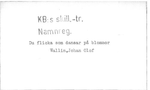 //// KB:s //// Namnreg. //// Du flicka som dansar på blommor Wallin,Johan Olof ////