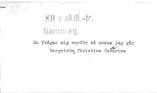 //// KB:s //// Navan eg. //// Du frågar mig varför så ensam jag går m, //// BergströChristina Ca=tina ////