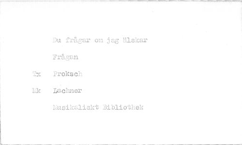 //// Du frågar om jag älskar //// 'rågan //// 2x, Proksch //// Lic Lacirner //// 1,,usikaliskt Bibliothek ////