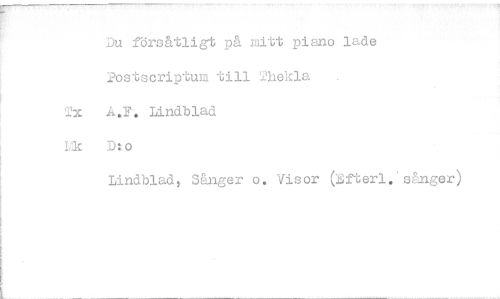 //// Du försåtligt på mitt piano lade Postscriptum till 211e1cla //// T A.F. Lindblad //// iDDo //// Lindblad, Sånger o. Visor ( fterl.sånger) ////