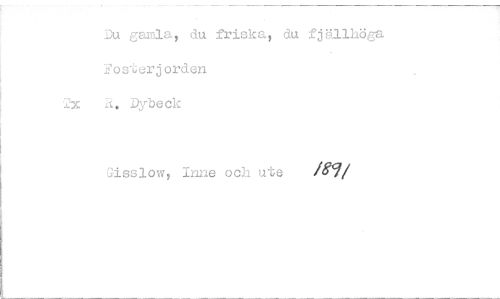 //// Du gamla, du friska, du fjällhöga Fosterjorden //// A. Dybeck //// Gisslow, Inne och ute ////