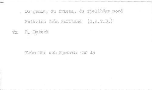 //// . Du gailla, du friska, du fjellhöga nord //// Folkvisa från Norrland (S.A.T.,3.) Ta R, Dybeck //// Från 1Pir och Fjerran nr 13 ////