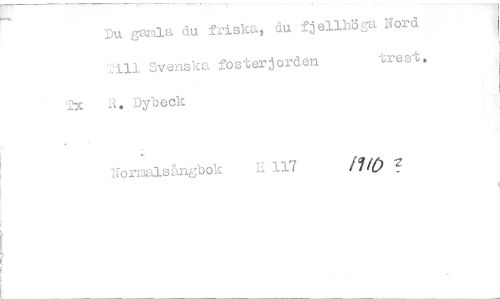 //// Du gamla du friska, du fjellhöga Nord //// 2ill Svenska fosterjorden trest. //// 2x A. Dybeck //// Normalsångbok 117 ////