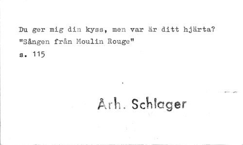 //// Du ger mig din kyss, men var är ditt hjärta? "Sången från Moulin Rouge" s. 115 //// Schk!ger ////