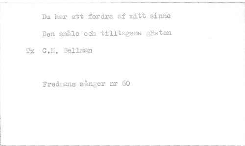 //// Du har att fordra af mitt sinne Den snåle och tilltagsne gästen Tx C.. Bellman //// Fredmans såna-er nr 60 ////