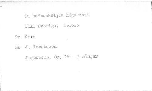 //// Du hafbesköljda höga nord Till Sverige. Arioso //// Tx C+++ //// Ek J. Jacobsson //// Jacobsson, Op. 16. er ////