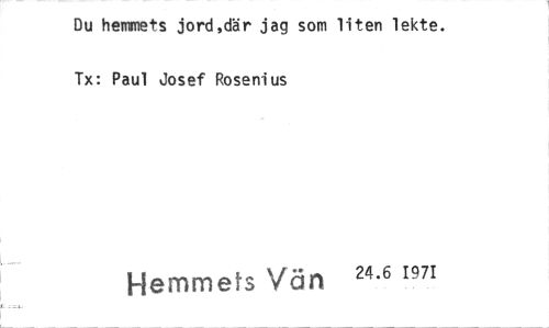 //// Du hemmets jord,där jag som liten lekte. //// Tx: Paul Josef Rosenius //// Hemmets Vän 24.6 1971 ////