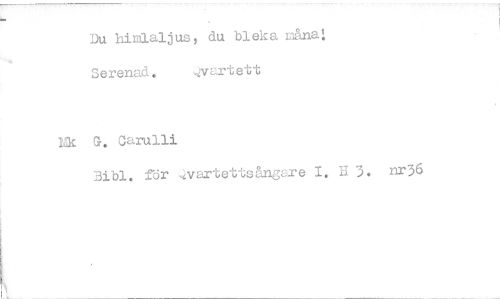 //// Du himlaljus, du bleka månat. //// Serenad . ,civuri; ett //// lat G. Carulli //// 3ibl för vartette ång3x e I. H 3. nr36 ////
