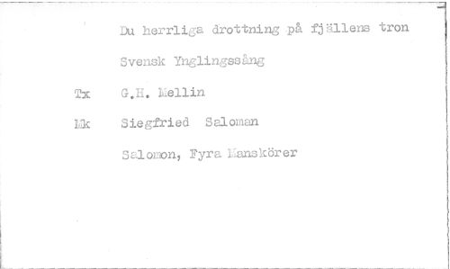 //// Du herrliga drottning på fjgllens tron Svensk Ynglingssång //// 2.2c G.H. Lenin //// Ek Siegfried Saloman Salomon, Fyra lanskörer ////