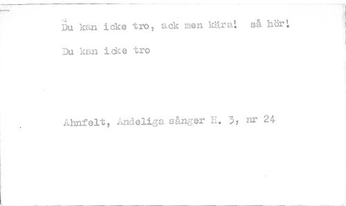 //// Du kan icke tro, ack men kära: så hört Du kan icke tro //// Ahnfelt, l',..ndeliga sånger E. 3, nr 24 ////