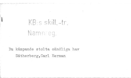 //// KB:s skift.-tr. //// Nam. //// Du kämpande stolta oändliga hav Sätherberg,Carl Herman ////