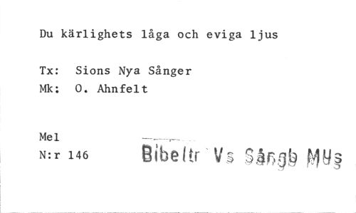 //// Du kärlighets låga och eviga ljus //// Tx: Sions Nya Sånger Mk: 0. Ahnfelt //// Mel nibeltr Vs , //// N:r 146 ////