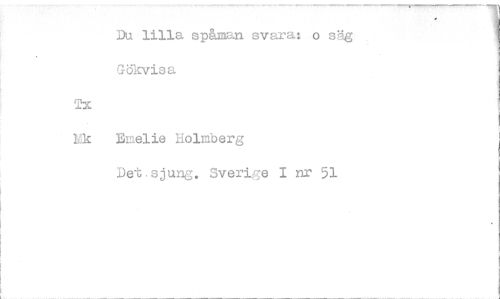//// Du lilla spåman svara: o säg Gökvisa //// Tx //// Ek Bmmlie Holmberg //// Det.sjung. Sverige I nr 51 ////
