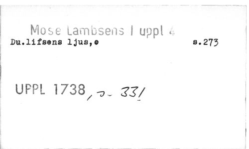 //// Mose Lambsens 1 uppt 6.273 //// Du.lifsena ljust* //// UPPI 1738 gg/ //// / ////