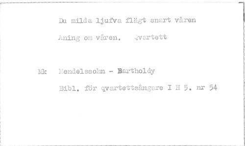 //// Du milda ljufva flägt snart våren //// Aning om våren. -,:w'artett //// endelssohn Bartholdy //// Bibi. för qvartettsnare 1 H 5. nr 54 ////