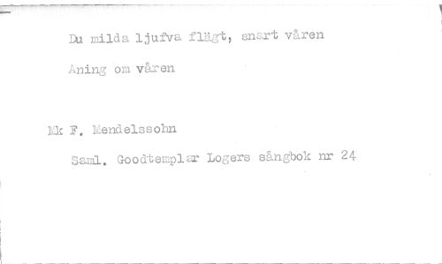 //// Du milda ljufVa flägt, snart våren Aning om våren //// 1,1 P. kendelssohn //// Saml. Goodtemplar Logers sångbok nr 24 ////