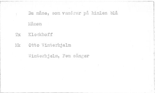 //// Du måne,, som vandrar på himlen blå //// Månen //// Tx Klockhoff //// Nk Otto Winterhjelm //// Winterhjelm, Fem sånger ////
