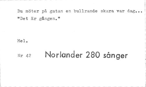 //// Du möter på gatan en bullrande skara var dag... "Det är gången." //// Mel. //// Nr 42 Norlander 280 sånger ////