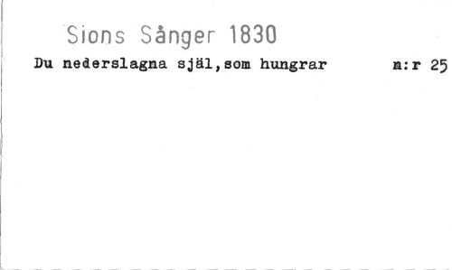 //// Sions Sånger 1830 //// Du nederslagna själ,som hungrar n:r 25 ////