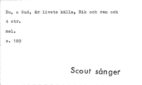 //// Du, o Gud, är livets källa, Rik och ren och 4 str. //// mel. //// s. 189 //// Scout sånger ////