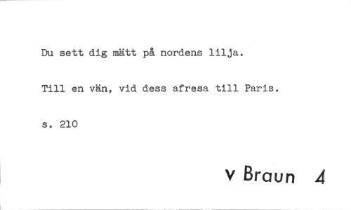 //// Du sett dig mätt på nordens lilja. //// Till en vän, vid dess afresa till Paris. s. 210 //// v Braun 4 ////
