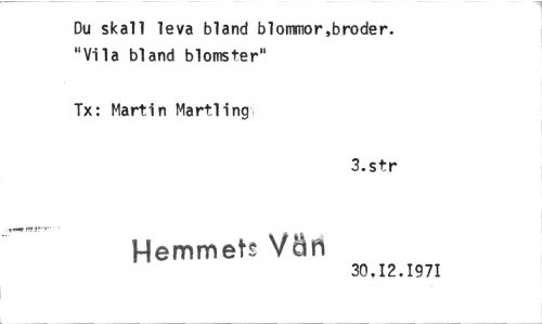 //// Du skall leva bland blommor,broder. "Vila bland blomster" //// Tx: Martin Martling //// 3.str //// Hemmen Van 30.12.1971 ////