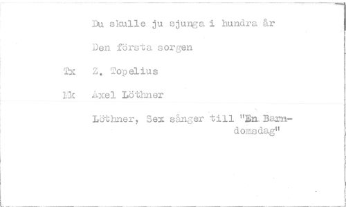 //// Du skulle ju sjunga i hundra år Den första sorgen //// Tx Z Top el iu s Lac axel Löthner //// Löthner, Sex sånger till "En. Barn- //// d OMS dag" ////