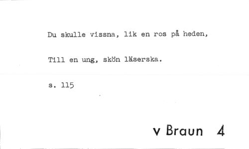 //// Du skulle vissna, lik en ros på heden, Till en ung, skön läserska. s. 115 //// v Braun 4 ////