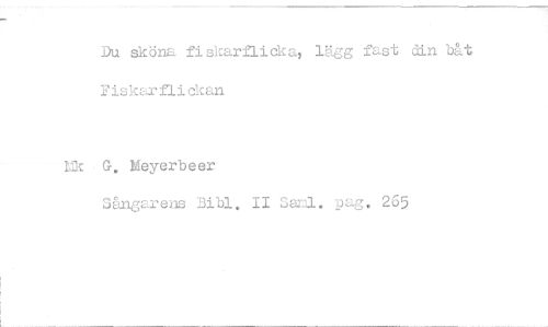 //// Du sköna fi skarflicka, lägg fast din båt Fiskarflickan //// /k G. Meyerbeer //// Sångarens Bibi. II Pag. 265 ////