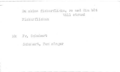 //// Du sköna fiskarflicka, ro med din båt //// till strand //// Fiskarflickan //// Mc Fr. Schubert //// Schubert, Fem sånger ////