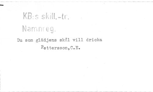 //// KB:s ski(1-tr. Nam.hreg. //// Du som glädjens skål vill dricka Pettersson,C.E. ////