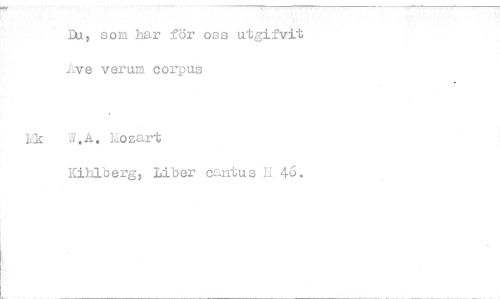 //// Du, som har för oss utgifvit verum corpus //// W.A. Lozart //// Kihlöerg, Liber cantus n 46. ////