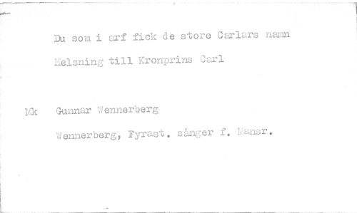 //// Du som i arf fick de store Carlars namn Eelsning till Kronprins 'Jarl //// Yk Gunnar Vennerberg //// Wennerberg, Fyrast. sånger f. Yansr. ////