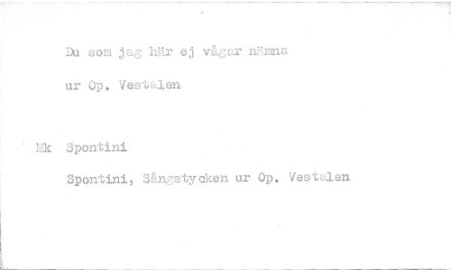 //// Du som jag här ej vågar nämna ur Op. Vestaten //// Mk Spontini //// Spdntini, Sångstycken ur Op. Vestelen. ////