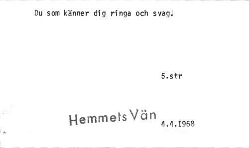 //// Du som känner dig ringa och svag. //// 5.str //// HemmetsVän 4.4.1968 ////