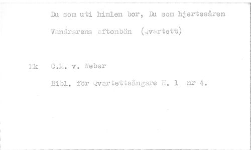 //// Du som uti himlen bor, Du som hjertesåren Vandrarens aftonbön (vartett) //// ;k 3.L. v. Aber //// Bibi. för vartettsångw K. 1 nr 4. ////