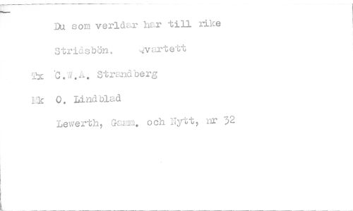 //// Du som verldar har till rike //// Stridsbön. 4vartett //// ix Strandberg //// :dc 0. Lindblad //// Lewerth, Gam. och Nytt, nr 32 ////