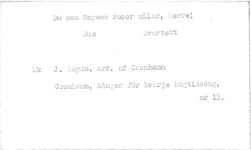 //// Du son. Ungens rosor målar, herre: //// D:o ..vartett //// Lic J. äaydn, arr, af Cronbamn //// Ctonhamn, Sånger för hvarje högtidsdag, //// nr 13. ////
