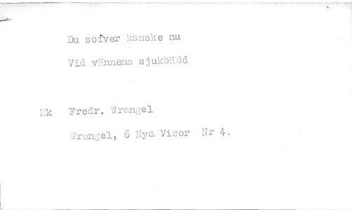 //// Du sofver kanske nu Vid vännens sjukbädd //// Lk. Fredr. Wrangel //// Wrangel, 6 Nya Visor Nr 4, ////