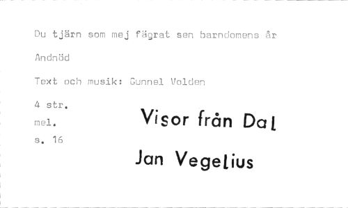 //// Du tjärn som mej fäprat sen barndomens år Andnöd //// Text och musik: Gunnel Volden //// 4 sta'. Visor från Dal //// s. 16 //// Jan Vegetius ////