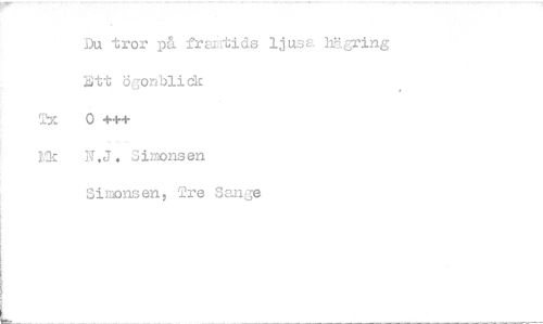 //// Du tror på framtids ljuse'. hKgring //// 1;tt ögonblick //// Tx 0 +++ //// Ek N.J. Azonsen //// Simonsen, Tre Sange ////